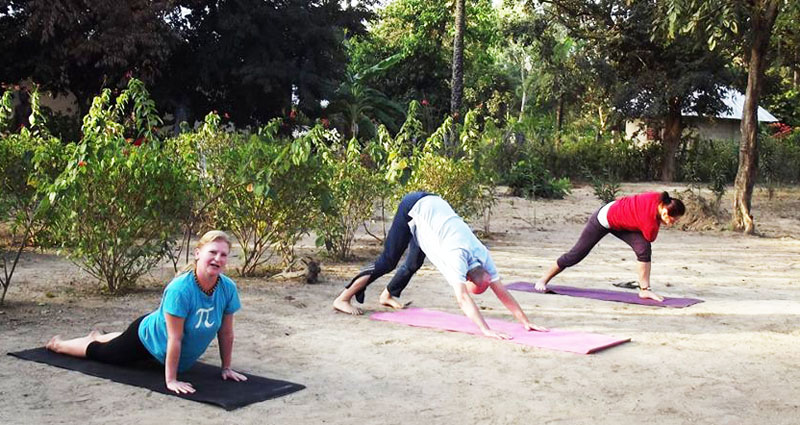 In Senegal we practice daily yoga and health training under the direction of Monica Rebcová