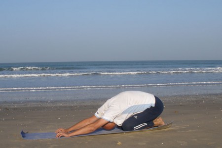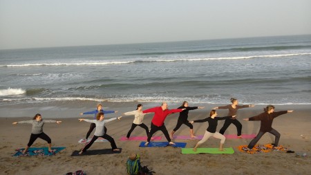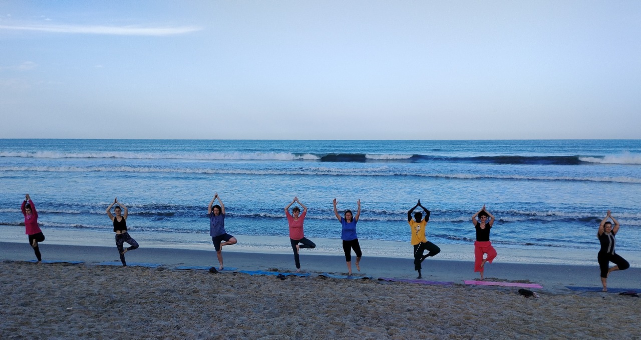 V Senegalu cvičíme denně jogu a zdravotní cvičení pod vedením certifikované lektorky Moniky Rebcové na pláži u moře.